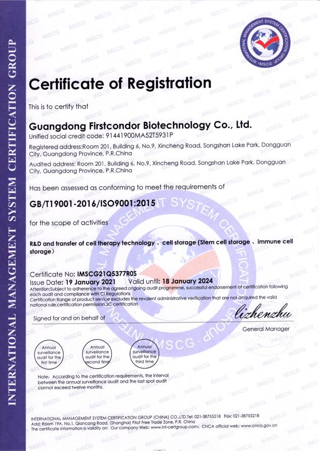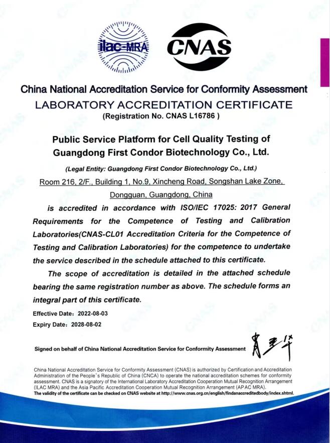 With strong scientific research strength, the group has developed a number of technology platforms with independent intellectual property rights, and through the identification of "Gazelle Enterprise", it has been approved to build "Songshan Lake Comprehensive Cell Bank", "Songshan Lake Regional Cell Preparation Center" and "Dongguan Cell Therapy Engineering Technology Research Center". Its Dongguan Life Bank is a leading cell storage center in China, and the public service platform for cell quality testing has been recognized by CNAS. The preparation of UCMSC passed the quality review inspection of NIFDC, and CAR-T cell preparations are being carried out clinical trials of solid tumors at many Grade-A tertiary hospitals.