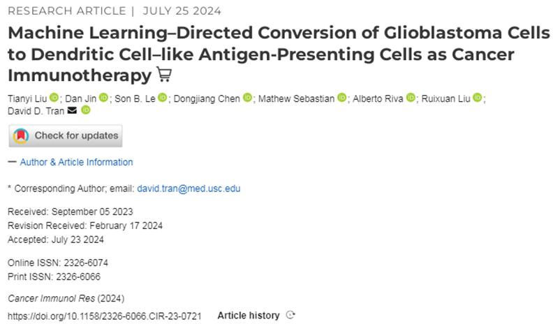 在一项关于胶质母细胞瘤的创新研究中,来自南加州大学、佛罗里达大学和北卡罗来纳大学的研究人员利用人工智能(AI)对癌细胞进行了重编程,将它们转化为树突细胞(dendritic cell),其中树突细胞可以识别癌细胞并引导其他免疫细胞杀死它们。相关研究结果于近日在线发表在Cancer Immunology Research期刊上,论文标题为“Machine Learning–Directed Conversion of Glioblastoma Cells to Dendritic Cell–like Antigen-Presenting Cells as Cancer Immunotherapy”。