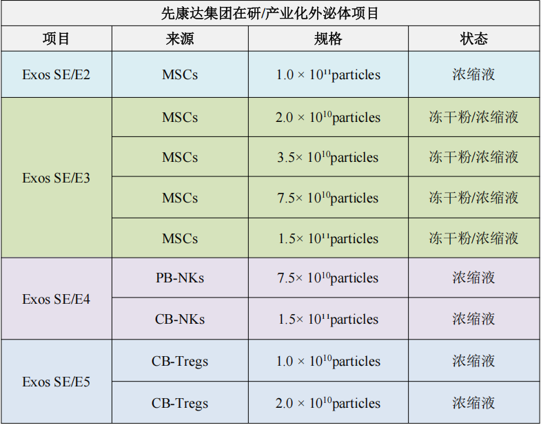 除间充质干细胞外泌体(MSC-Exos)外,集团依托现有技术优势,同步开发出外周血NK细胞、脐带血NK细胞、脐带血Treg细胞来源的外泌体,作为先进技术储备,为后续外泌体临床研究奠定基础。