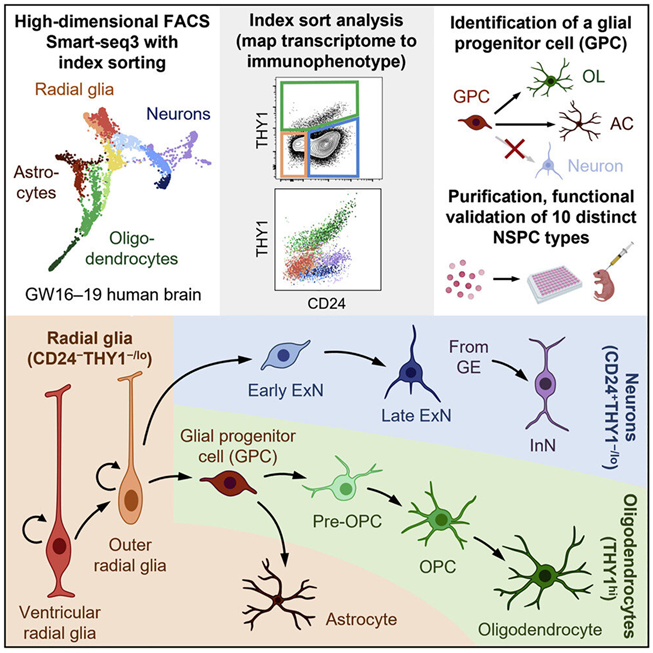 人脑拥有约1710亿个细胞,其中略高于一半(约860亿)是神经细胞。这860亿个神经细胞是一个多样化的细胞群体,有数百种专门的类型和功能,但都源自三个神经细胞谱系——神经元、少突胶质细胞和星形胶质细胞。这三个细胞谱系都是从神经干/祖先放射状胶质细胞(neural stem and progenitor radial glia cell)池开始的,这些神经干/祖先放射状胶质细胞在产前妊娠的第二个三个月经历了快速发育。了解这些放射状胶质细胞,它们如何分化成这三个细胞谱系,以及这三个谱系如何分化成多样化的神经细胞,将对医学研究有巨大的好处。
