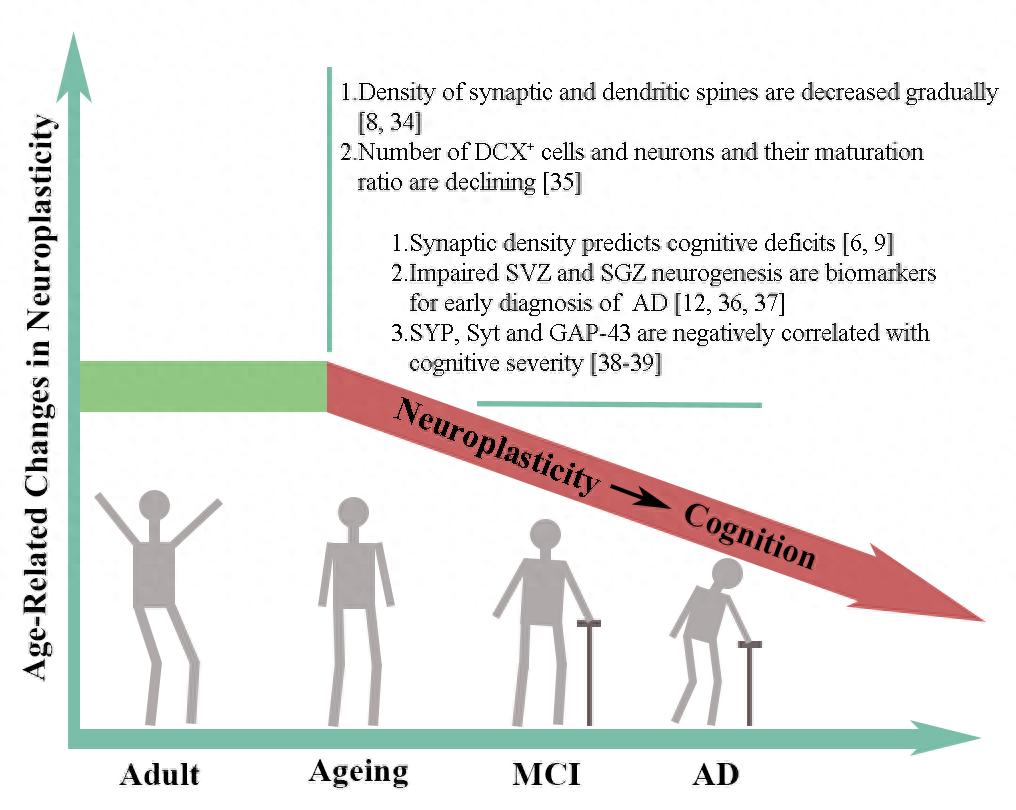 随着年龄的增长,神经可塑性受损越来越严重,这是早期预测及诊断阿尔茨海默病的一个有效标志。早期阿尔茨海默病神经可塑性已经受损,所以检测衰老和阿尔茨海默病的神经可塑性是否受损,有利于提高阿尔茨海默病的早期诊断率。神经干细胞具有自我更新、多向分化、免疫原性低、归巢能力强以及免疫调节和旁分泌功能等优点。神经干细胞通过旁分泌作用分泌可塑性相关分子,促进神经发生、突触发生。重要的是,神经干细胞移植可从根本上逆转阿尔茨海默病神经元和突触的丢失。此外,神经干细胞还可以减轻阿尔茨海默病的典型病理变化,如淀粉样蛋白β和tau及神经炎症。因此,神经干细胞调节神经可塑性可能是一种有前途的阿尔茨海默病再生疗法。