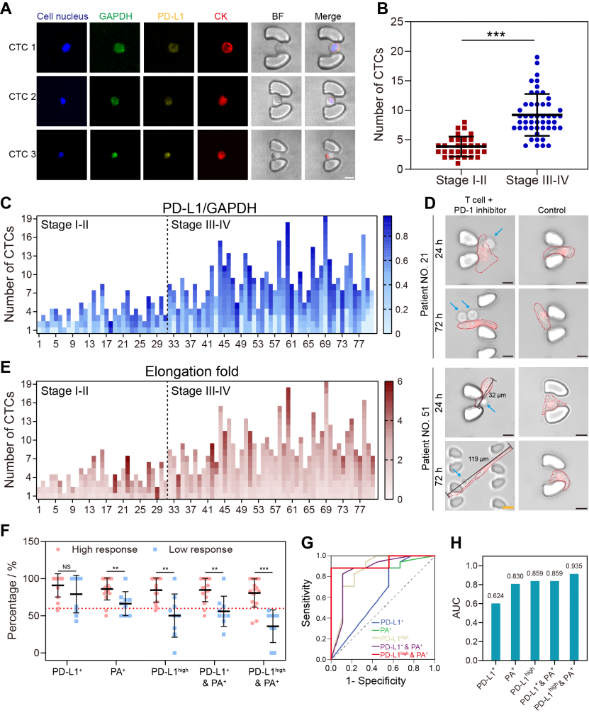 图3. 采用NICHE系统对肺癌血样中的CTCs进行捕获与分析,并实现了患者免疫治疗的精准预测