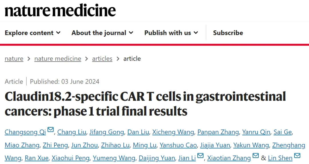CT041/satricabtagene autoleucel(satri-cel)是一种CLDN18.2特异性CAR-T细胞疗法,此前已被证实其表达出具有希望的应答率且安全性可控。近期,《自然-医学》(Nature Medicine)发表satri-cel的一项1期研究最终结果,表明对于CLDN18.2阳性胃肠道癌患者而言,CAR-T细胞疗法显示出相当的治疗潜力和可控的安全性,该研究患者总缓解率和疾病控制率分别为38.8%和91.8%,中位无进展生存期和总生存期分别为4.4个月和8.8个月。