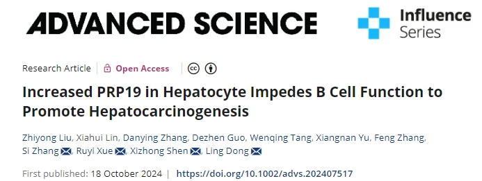 10月18日,复旦大学研究团队在期刊《Advanced Science》上发表了研究论文,题为“Increased PRP19 in Hepatocyte Impedes B Cell Function to Promote Hepatocarcinogenesis”,本研究中,研究人员对高和低B细胞浸润的HCC样本的表达差异进行了探索,以识别关键调节因子。研究发现,抑制PRP19表达促进了肿瘤组织中B细胞浸润,并阻碍了HCC的生长。机制上,共免疫沉淀(Co-IP)实验揭示,PRP19与DDX5相互作用,导致DDX5蛋白的泛素化和降解。减弱的DDX5会破坏CXCL12 mRNA的稳定性,通过CXCL12/CXCR4轴抑制B细胞招募和浆细胞分化。此外,在小鼠模型中,采用CXCR4+ B细胞的过继转移结合CXCL12治疗有效地抑制了HCC的发生,从而重塑了免疫反应。PRP19、DDX5和浸润B细胞的表达被认为是HCC患者的临床预后指标。总的来说,这项研究为HCC免疫治疗提供了有价值的见解,通过靶向PRP19并调节肿瘤浸润B细胞的免疫功能来改善临床疗效。